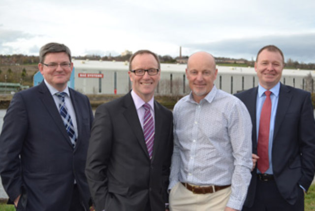 Caption: Stephen Appleby, Head of Commercial & Procurement and David Bond, Managing Director Combat Vehicles (UK) of BAE Systems, John Reece, Chairman and Phil Kite, CEO of Reece Group